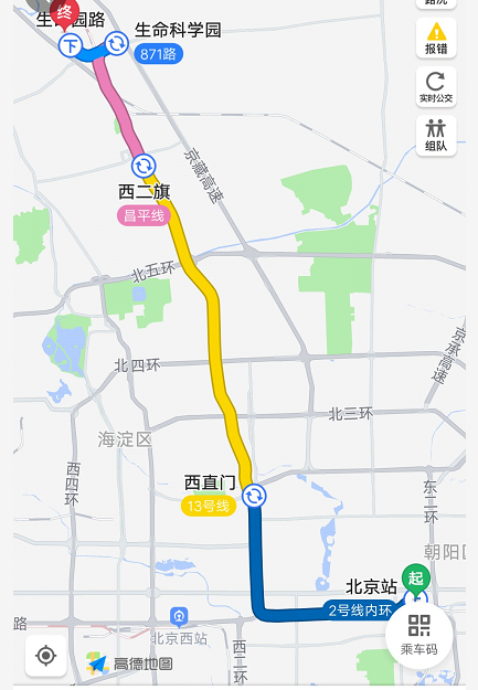 (注:2号线内环、13号线、昌平线、871或878路公交)