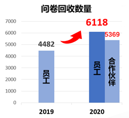 2020年3月,TCL审计监察部面向全体员工和部分合作伙伴开展了2020年TCL廉洁指数调查工作,共收回有效问卷11487份,其中员工6118份;今年首次面向合作伙伴发放问卷,收回5369份。基于问卷数据,形成了《2020年TCL廉洁指数调查报告》。 员工信任度提高