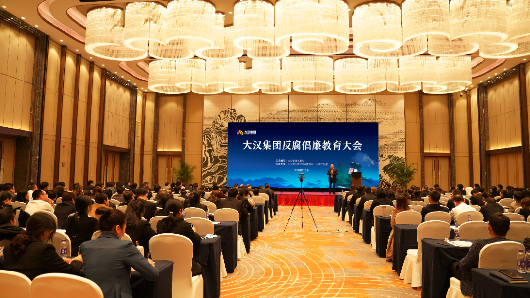 2020年10月22日上午,大汉集团反腐倡廉教育大会在金桥华美达酒店举行,湖南省检察院宣教处处长饶力明、望城经开区纪工委副书记万海波、大汉集团董事长傅胜龙、大汉集团监事会主席曾登奎、大汉集团全体高管及监察、财务、成本、采购、法务人员出席了会议。